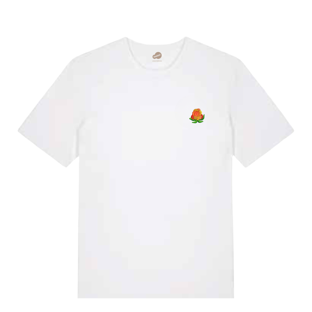 T-skjorte av 100 % økologisk bomull med Multe broderi. T-skjorta er unisex og har en avslappet stil, men er ikke direkte oversized. Rett i formen og ribb i halsen.